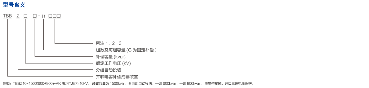 TBBZ-10系列高压无功自动补偿装置根据6KV、10KV供电母线的电网及负荷状况,通过控制系统电容器组自动跟踪投切,进行无功功率自动跟踪补偿,功率因数达到0.9以上。极大的优化电能质量、节损降耗,提高输配电系统的输送容量。