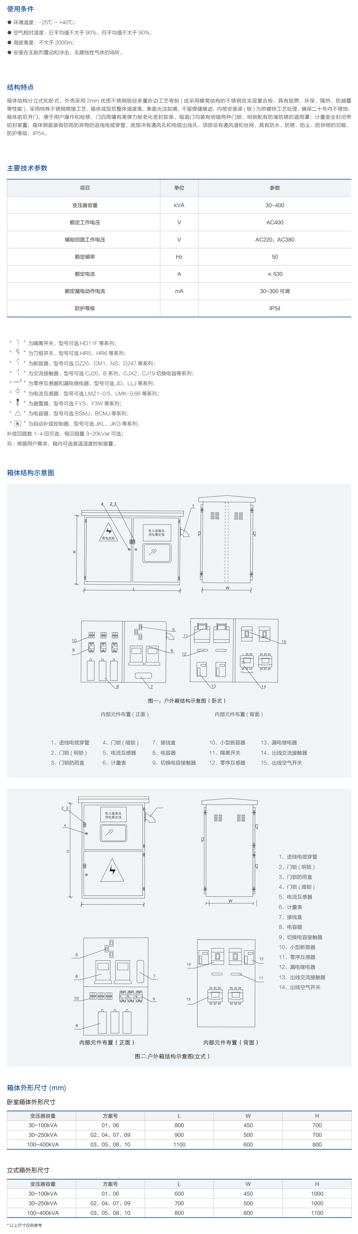 JP系列户外综合配电箱,是集计量、出线、无功补偿等多功能于一体达到户外综合配电装置,具有短路、过载、过电压、漏电保护等功能,体积小、外型美观、经济实用,安装于户外柱上变压器的电杆上,是城乡电网改造的新一代理想配电产品。