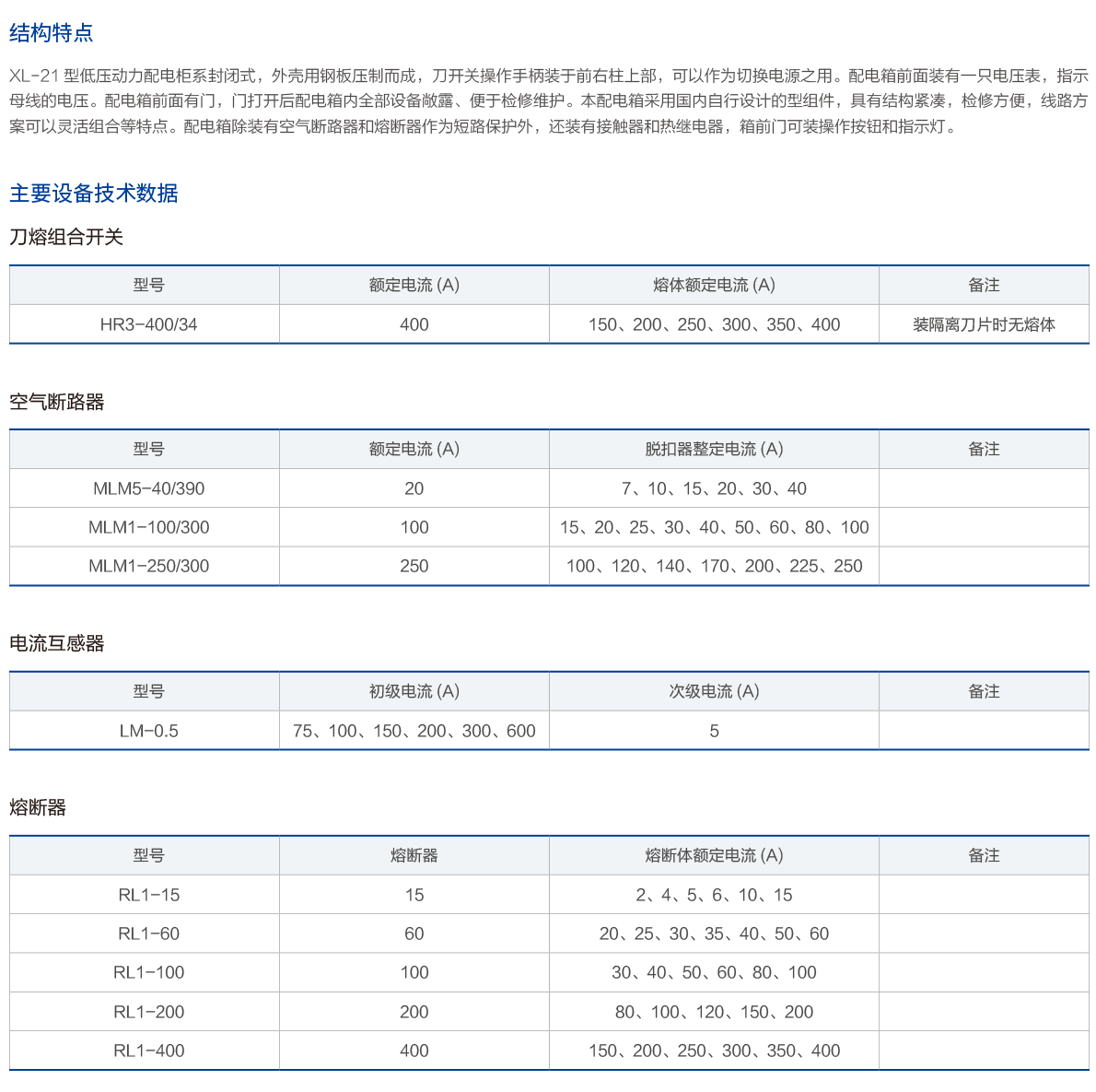 XL-21型低压动力配电柜适用于发电厂及工矿企业中,在交流电压500伏及以下的三相四线系统作动力配电之用。