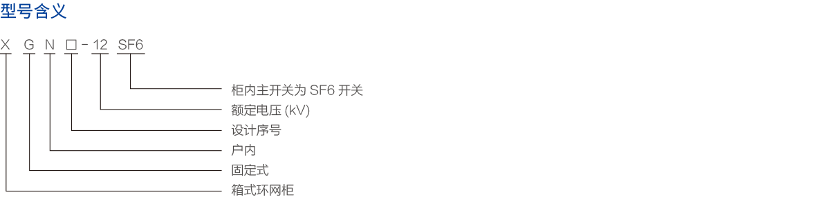 XGN□-12型单元式交流金属封闭环网开关设备, 适用于交50Hz、12kV的电力网络中,作为电能的接受和分配之用。柜内主开关为SF6开关。